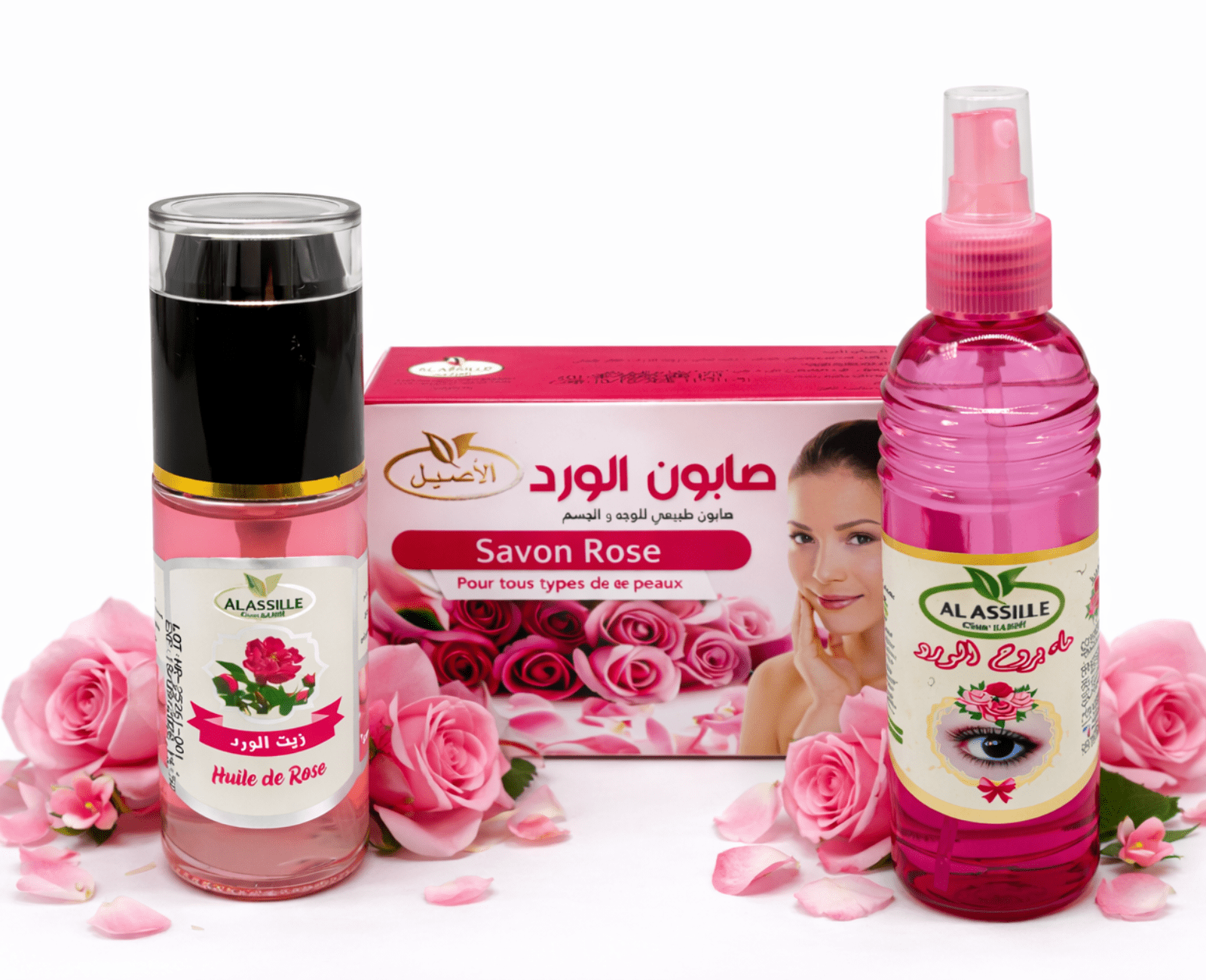 Le Pack Rose réunit trois essentiels à la rose pour une routine visage délicate et parfumée. Il comprend un savon à la rose, une eau de rose et une huile de rose pour nettoyer, rafraîchir et sublimer la peau au quotidien. Un coffret idéal pour une peau douce et éclatante.