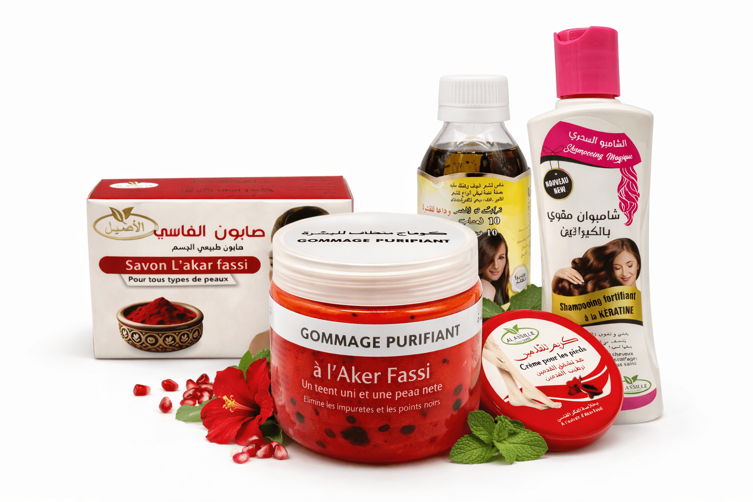 Le Pack Sayidati réunit cinq essentiels beauté pour une routine complète visage, pieds et cheveux. Il associe les bienfaits de l’Aker Fassi, une crème pieds anti-gerçures et un duo capillaire fortifiant à la kératine. Un coffret polyvalent pour prendre soin de soi au quotidien.