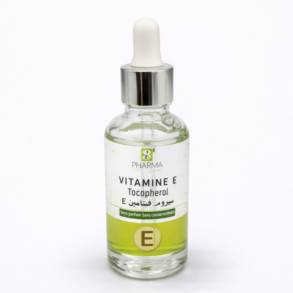 Le Sérum Vitamine E – 8 Pharma est un soin cosmétique concentré, présenté dans un flacon compte-gouttes pratique pour une application précise. Sa formule met en avant la vitamine E (tocopherol), un actif largement utilisé en cosmétique pour le soin de la peau.